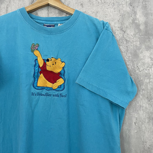 90S VINTAGE 古着 ビンテージ ディズニー プーさん Pooh キャラクター 刺繍 ライトブルー アニメ