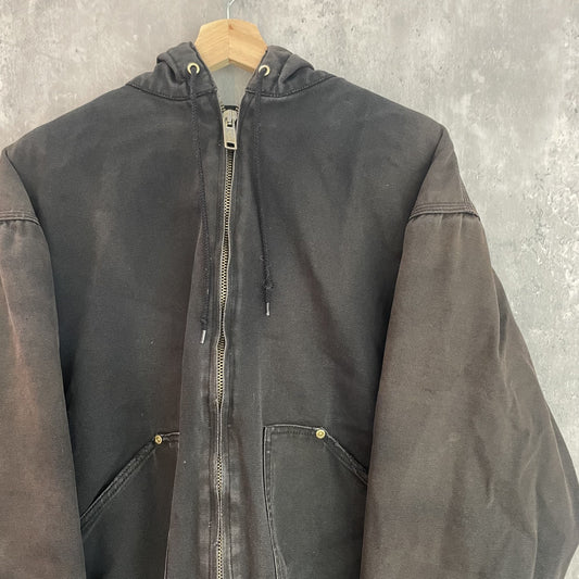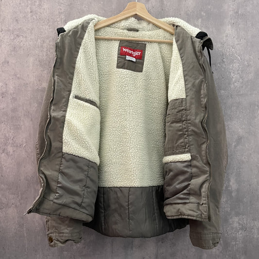 90s vintage 古着 ビンテージ ラングラー Wrangler フェイクレイヤードジャケット 内側ボア フード付 ダック地 フルジップ