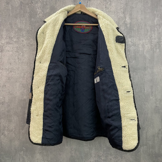 90s vintage 古着 ビンテージ 襟ボア くるみボタン 総柄レザー スウェード ウールジャケット カジュアル アメカジ
