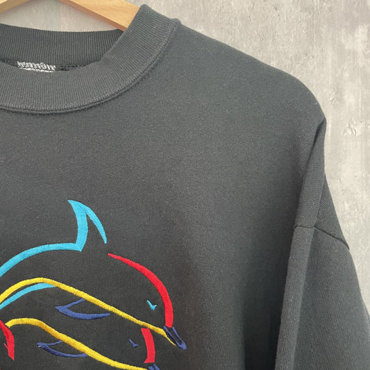 90s vintage 古着 ビンテージ フロントイルカ刺繍 スウェット アニマル 動物