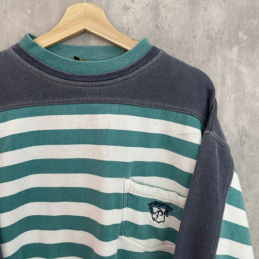 90s vintage 古着 ビンテージ PERMIT ボーダースウェット ワンポイント刺繍 切り返し アーム太 ストリート