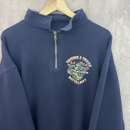 00s vintage 古着 ビンテージ ジャージーズ JERZEES スウェット ハーフジップ 龍 バックプリント チャイナタウン