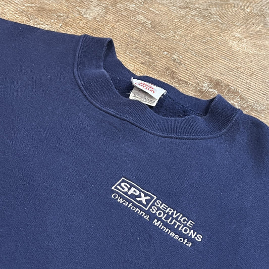 00s JERZEES SPX 企業ロゴ 刺繍胸ワンポイントスウェット ネイビー XL